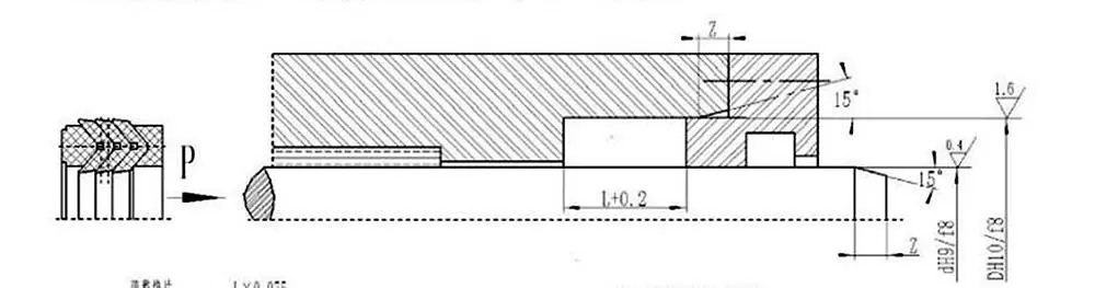 Garniturile în formă de V pot fi ajustate în dimensiunea axială prin reglarea garniturii pentru a obține o etanșare și frecare optime. Uzura inițială după funcționarea pe termen lung poate fi extinsă prin ajustarea dimensiunii axiale. Designul recomandat pentru dimensiunea axială reglabilă a cavității de etanșare este de 1,025 L, cu un interval de reglare de 7,5% L.