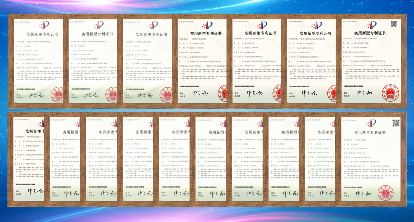 Qingdao Ruichen SEALING Technology Co., Ltd. conduce dezvoltarea tehnologiei de sigilare cu inovație și are peste 40 de brevete autorizate naționale, care acoperă zone de bază, cum ar fi proiectarea structurii de etanșare, cercetarea și dezvoltarea materialelor și procesele de producție. Tehnologia noastră brevetată îmbunătățește eficient performanța de sigilare și durata de viață a produselor și depășește problemele industriei în condiții de muncă complexe, cum ar fi presiunea înaltă și temperatura extremă. Bazându -ne pe aspectul brevetului, oferim soluții de etanșare personalizate pentru clienții globali pentru a îndeplini standardele stricte ale diferitelor piețe regionale. Sistemul de cercetare și dezvoltare continuă și inovator și capacitățile de transformare a brevetelor ajută partenerii să reducă costurile și să crească eficiența și să lucreze împreună pentru a deschide un spațiu de piață mai larg.