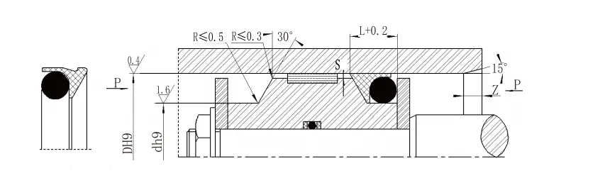 NOTĂ: Pentru presiune> 60MPa, zona de rădăcină de etanșare folosește toleranța de potrivire H8/F8, iar sigiliul de presiune ultra-ridicat Smax <0.05. |