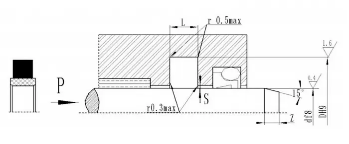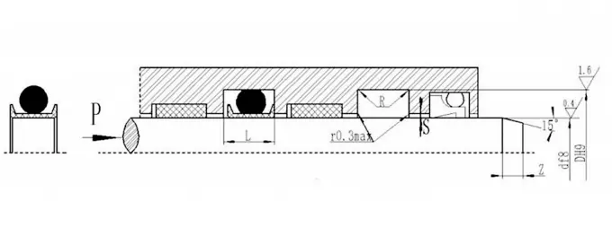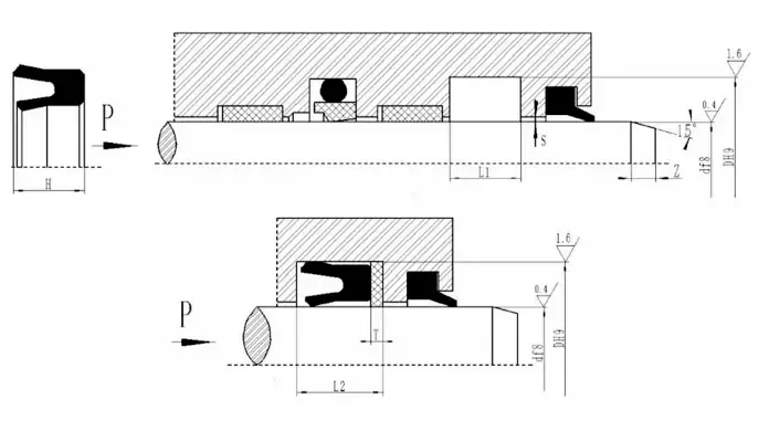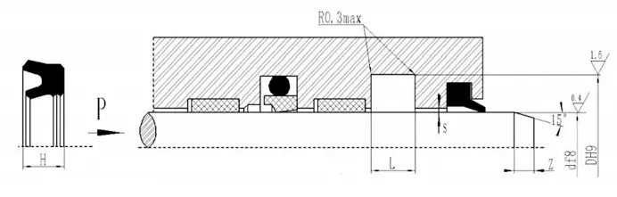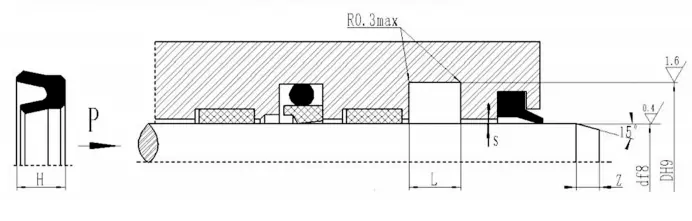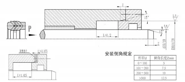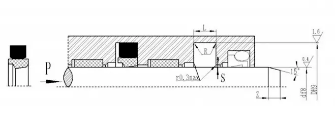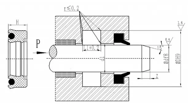 Garnitura combinată în formă de V poate obține cea mai bună stare de etanșare și frecare prin reglarea dimensiunii axiale a garniturii. Uzura inițială după funcționarea pe termen lung poate fi extinsă prin reglarea dimensiunii axiale. Se recomandă ca dimensiunea axială reglabilă a cavității de etanșare să fie proiectată să fie 1.025L, iar cantitatea de reglare este de 7,5%L.